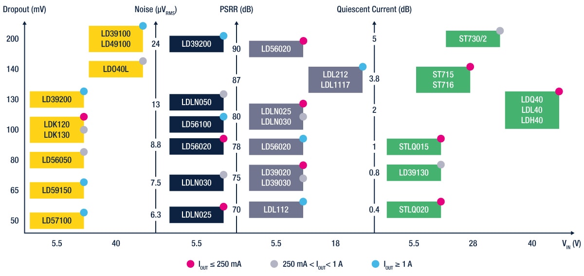 意法半导体的高性能低压降 (LDO) 线性稳压器集多种优势于一身,能够满足工业和汽车市场严格的性能要求。意法半导体为汽车、工业和消费电子等各种应用环境提供不断扩展的高性能LDO稳压器。这些稳压器具有低静态电流、低噪声、高PSRR(电源抑制比)等特性,并采用紧凑型封装,可为汽车、工业和消费电子等各种应用环境的新解决方案开发提供支持。