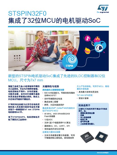 我们的STSPIN电机驱动器系列集成了以极高精度高效驱动电机所需的所有功能,并且包括一个可降低主微控制器负荷的运动曲线生成器,同时通过一套全面的保护和诊断特性确保稳固性和可靠性。