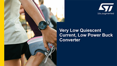 Very Low Quiescent Current, Low Power Buck Converter The ST1PS01 is specifically designed for applications where high efficiency and PCB size and thickness are key factors. The output voltage can be set dynamically using two digital control inputs.