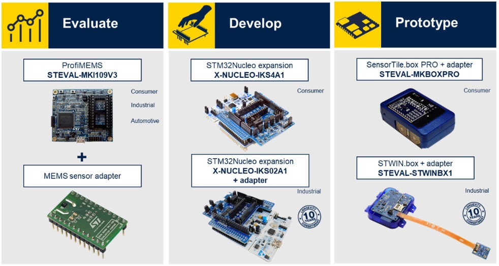传感器中机器学习内核入门的最佳方法是,借助支持意法半导体产品的开发工具和软件,为具体应用选择适当的解决方案。