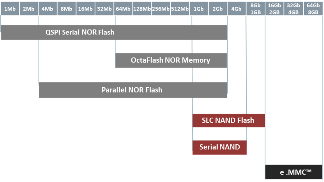 Also known as parallel NAND, is available from 1 Gb to 8 Gb density for connection to the asynchronous memory interface. - eMMC™