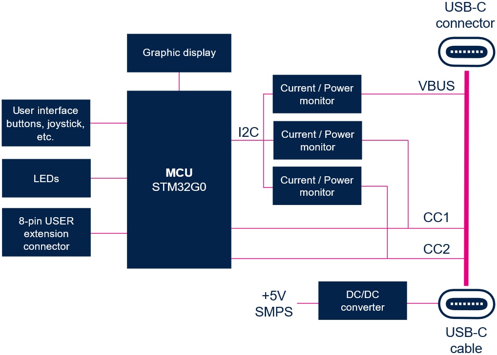 该解决方案基于STM32G0认证的USB-C电源传输3.0微控制器,运行STM32CubeMonUCPD软件分析仪,以监控和配置USB Type-C和电源传输应用。支持C型USB接口™ 1.2和USB PD 2.0/3.0规范,可在独立sink模式或spy模式下执行。