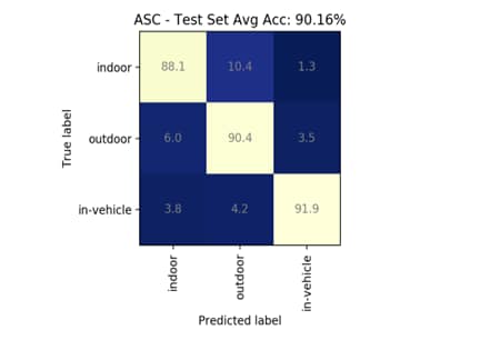 每1024毫秒,将 (30×32) LogMel声谱图输入到ASC卷积神经网络输入,然后可以将输出标签分类为室内、室外和车内。