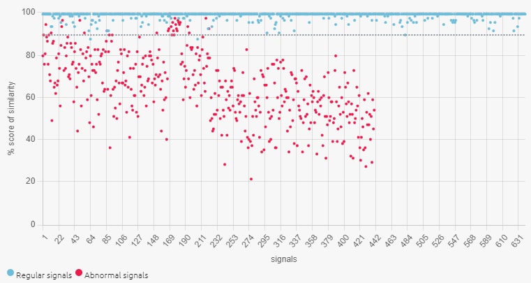 信号值位于横坐标,预测置信度显示在纵坐标上