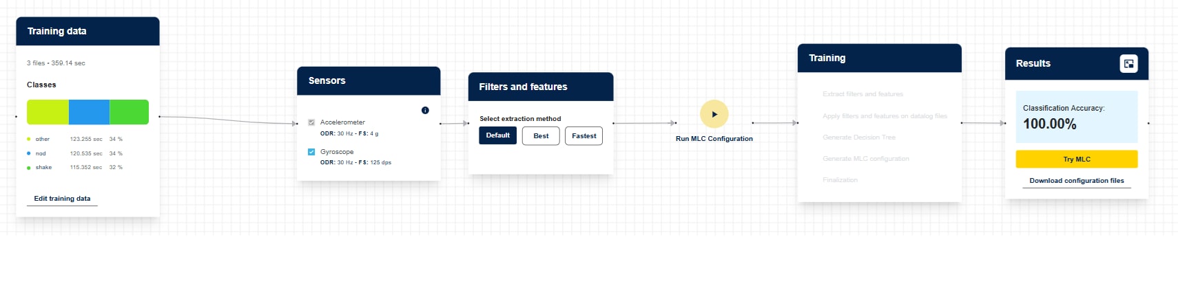 通过LSM6DSV16X的机器学习内核 (MLC) 配置,可识别三类动作:点头、摇头、其他。