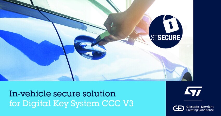 STSAFE-VJ100-CCC安全元件、SPC58汽车级微控制器(主ECU)和ST25R3920B NFC读卡器的组合能够利用智能手机安全地开关车门或后备箱,妥善地管理钥匙和证书,同时符合CCC V3.0规范的无线软件更新要求。