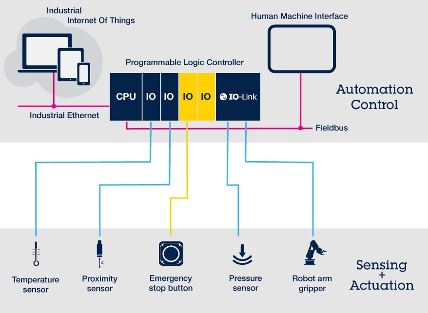 输入/输出 (I/O) 模块从输入设备(包括接近、压力、温度传感器和按钮)收集数据,并控制致动器,如阀门、继电器和灯具(输出设备)。  这些模块可以添加到可编程逻辑控制器 (PLC) 控制柜中,也可以集成到工厂的制造设备中。I/O模块符合安全标准(如IEC 61000电磁兼容性规范),确保安全稳定运行。当I/O模块包含诊断功能时,对提供的数据进行分析可以简化维护活动并将设备停机时间降至最低。