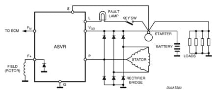 This device regulates the output of an automotive generator by controlling the field winding current by means of a variable frequency PWM high side driver.