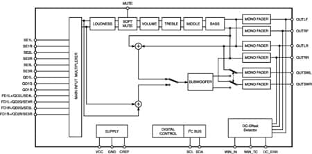 4 independent soft step speaker controls +15 dB to -79 dB with 1 dB steps Direct mute - Treble