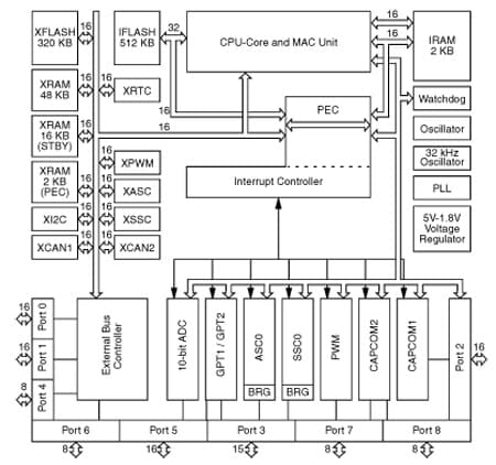 - 320 Kbyte extension Flash memory (16-bit fetch)