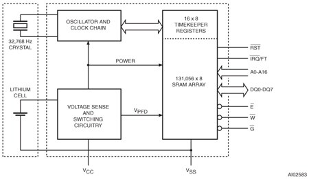 The M48T129Y/V TIMEKEEPER® RAM is a 128 Kb x 8 non-volatile static RAM and real-time clock with programmable alarms and a watchdog timer. The special DIP package provides a fully integrated battery-backed memory and real-time clock solution. The M48T129Y/V directly replaces industry standard 128 Kb x 8 SRAM. It also provides the non-volatility of Flash without any requirement for special WRITE timing or limitations on the number of WRITEs that can be performed.