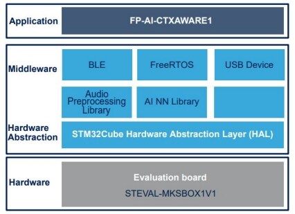 - 中间件库由称为X-CUBE-AI的STM32CubeMX扩展生成,包含用于声学场景分类(ASC)应用的神经网络示例实现