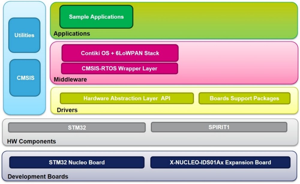 With the Contiki 3.x port ST developed for the NUCLEO-F401RE and NUCLEO-L152RE development boards equipped with the X-NUCLEO-IDS01Ax sub-1 GHz RF communication board based on the SPIRIT1 transceiver, you can develop a variety of IoT applications with the features and flexibility of the Contiki OS running on an STM32 platform coupled with the SPIRIT1 transceiver.