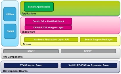 The osxContiki6LP add-on for the X-CUBE-SUBG1 expansion package implements the Contiki OS and Contiki 6LoWPAN stack 3.x on the STM32 microcontroller with ST’s SPIRIT1-based sub-1 GHz RF communication boards.