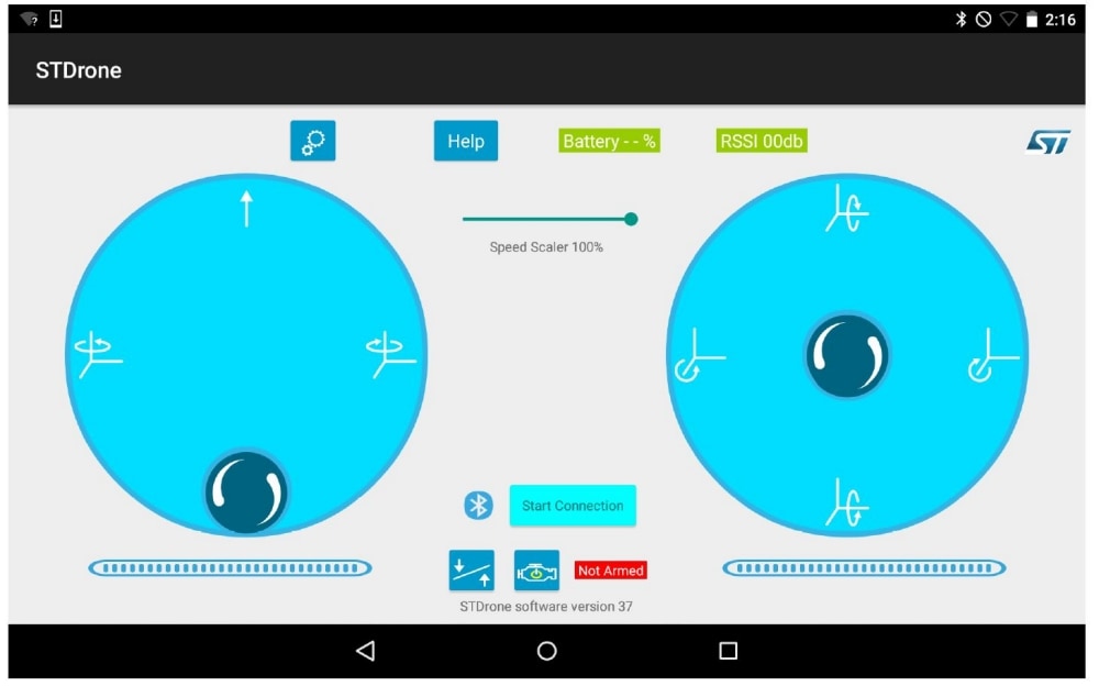 ST_BLE_DRONE provides an easy-to-use interface to replicate the remote control functionality on the smartphone.