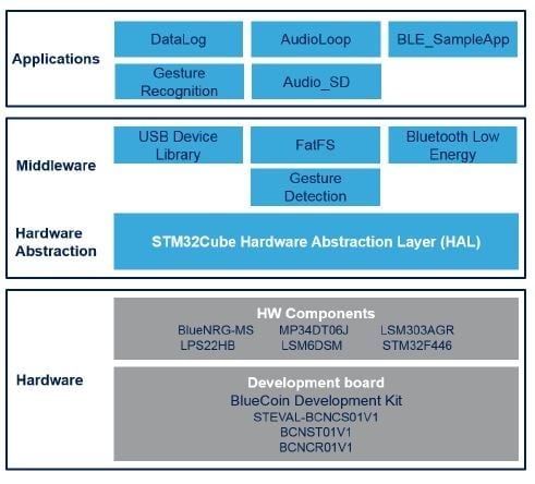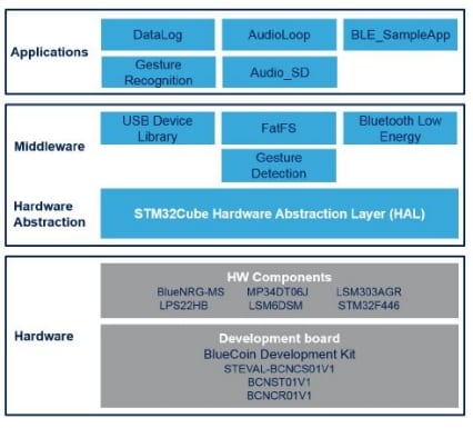 BlueCoin入门套件STSW-BCNKT01固件包为定制应用开发提供示例项目,