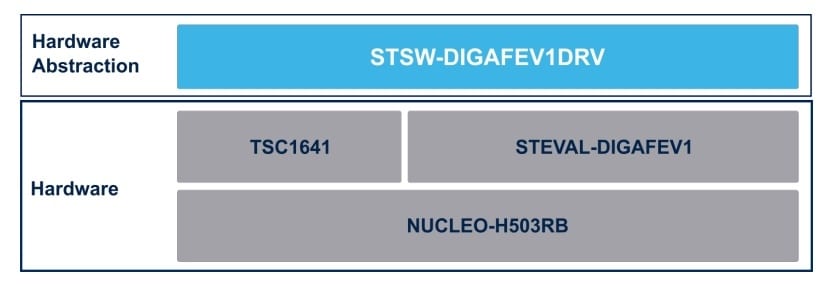 The STSW-DIGAFEV1DRV drivers help the users to handle the TSC1641 and its evaluation board (STEVAL-DIGAFEV1).