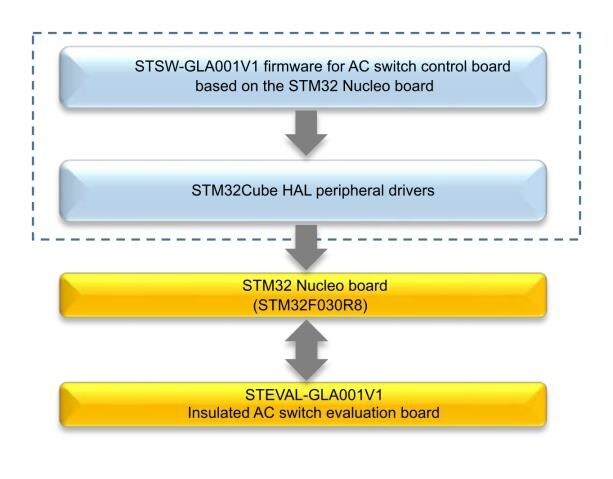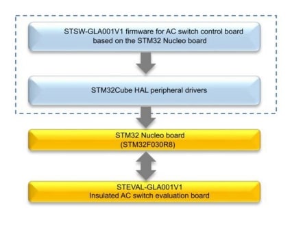 - 配置和独立控制嵌入到STEVAL-GLA001V1评估板中的三个TRIAC和AC开关: