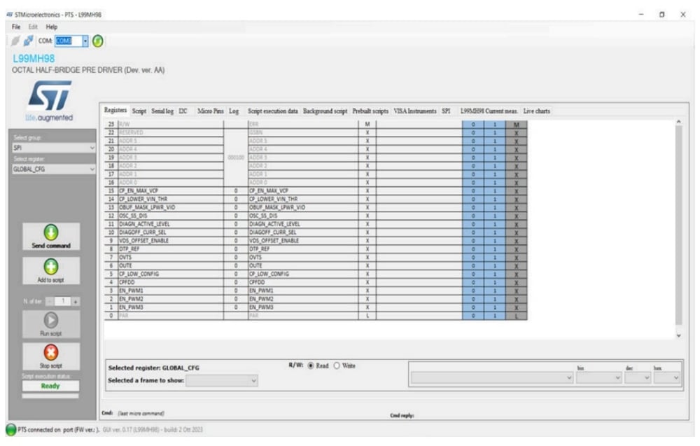 - 支持与STEVAL-L99MH98开发板交互,以全面展示L99MH98器件