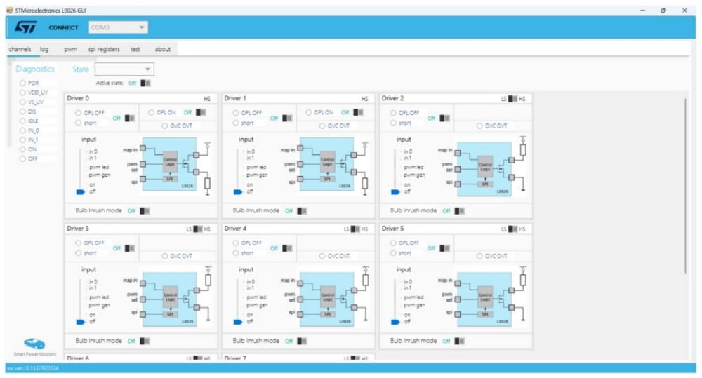 - 通道接口可独立控制每个通道(最多8个),并选择每个通道的驱动方式(通过SPI、PWM或IN0/IN1输入)
