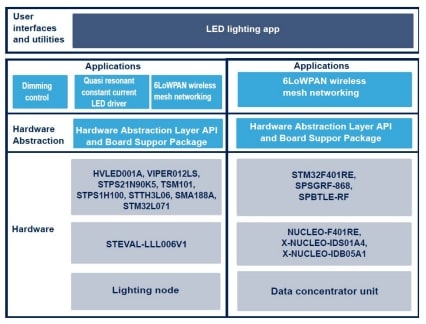 意法半导体的6LoWPAN智能路灯移动应用程序(可从Google Play应用商店获取)将评估板上微控制器和射频模块代表的照明节点纳入6LoWPAN Mesh网络。
