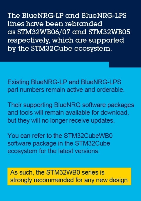- BlueNRG-LP, BlueNRG-LPS SDK and HAL drivers