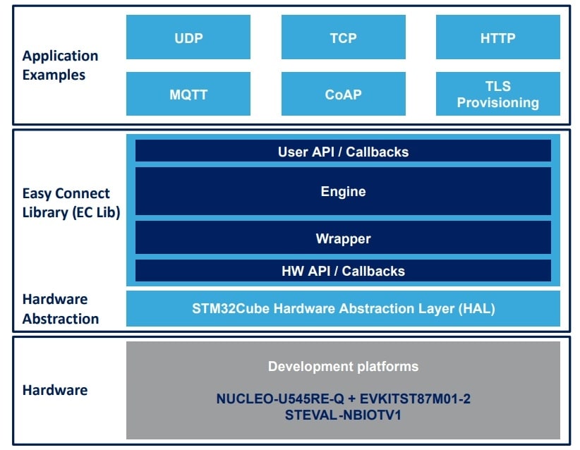 It supports two distinct hardware platforms: STEVAL-NBIOTV1 and EVKITST87M01-2.