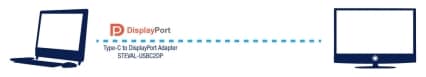 The compact USB Type-C to DisplayPort adapter reference design, with USB Type-C connector and DisplayPort connector, exploits Alternate Mode of the USB Type-C and Power Delivery specifications to offer a comprehensive VESA® DisplayPort Standard interface.