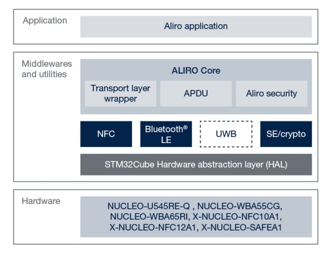 X-CUBE-ALIRO also comes with a preintegrated Bluetooth® LE stack and NFC Forum Type A drivers, streamlining development and reducing integration effort. This ensures compatibility with industry standards and accelerates time-to-market for Aliro-enabled applications.