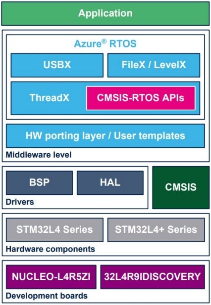 - Azure® RTOS FileX, Azure® RTOS LevelX, and Azure® RTOS USBX running with Azure® RTOS ThreadX or in bare-metal mode