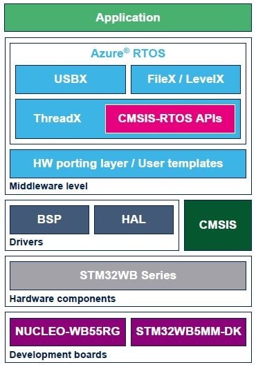 此扩展包的范围包括以下Azure® RTOS中间件:RTOS(ThreadX)、USB设备(USBX)和文件系统,包括对NOR和NAND Flash存储器(FileX和LevelX)的支持。