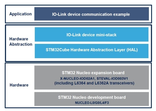 - 实现方案示例,适用于连接到NUCLEO-L073RZ或NUCLEO-G071RB开发板的X-NUCLEO-IOD02A1扩展板