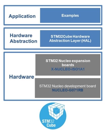- 连接到NUCLEO-G071RB开发板的X-NUCLEO-ISO1A1开发板(其他兼容的开发板为NUCLEO-G0B1RE和NUCLEO-G070RB)上提供预编译的二进制文件。