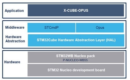 The X-CUBE-OPUS expansion software package for STM32Cube runs on different STM32 MCU families and includes a firmware example that allows to easily configure and profile Opus encoder and decoder.