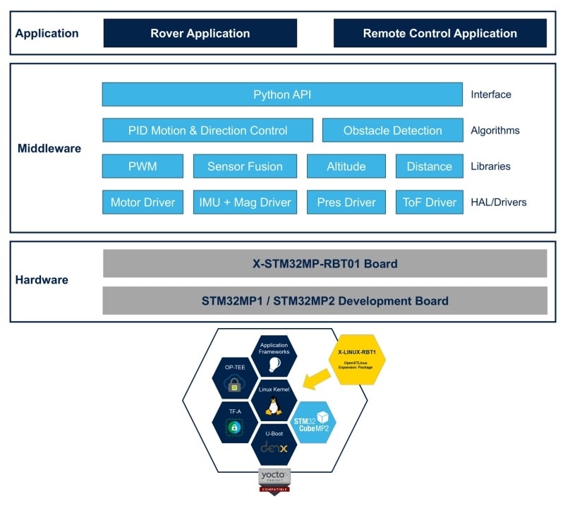 X-LINUX-RBT1是一款基于Linux的软件包,适用于X-STM32MP-RBT01扩展板,用于开发面向STM32MP等微处理器平台的机器人应用。