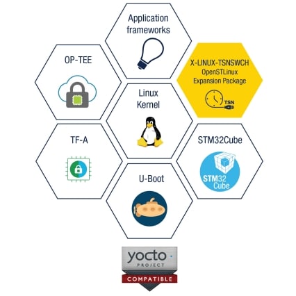 X-LINUX-TSNSWCH是一个同时面向Linux®中时间敏感网络 (TSN) 功能和硬件以太网交换机配置的OpenSTLinux扩展包。