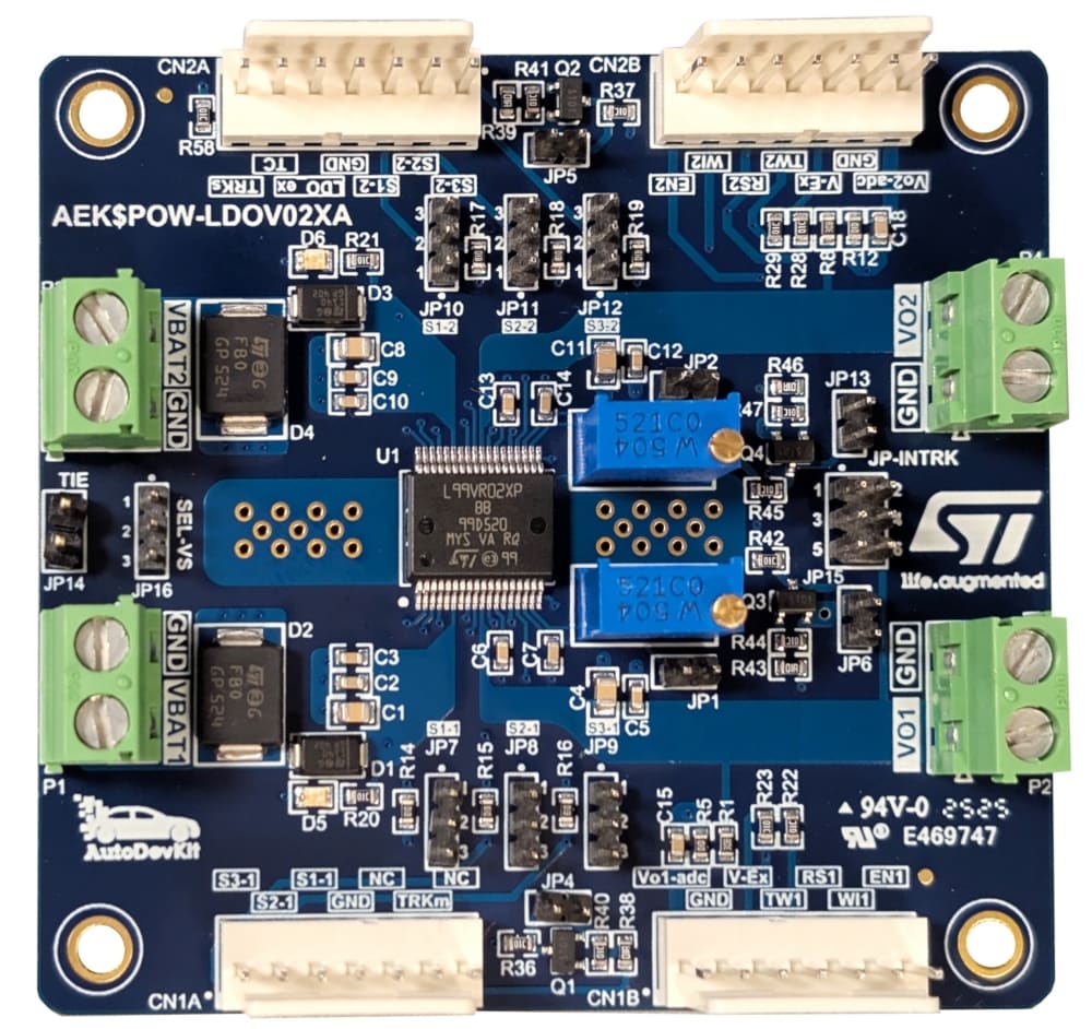 意法半导体AEK-POW-LDOV02X评估板成功解决了这一难题;得益于L99VR02XP双线性稳压器,该评估板可以达到更高的输出电流并在多个器件之间分配功耗。