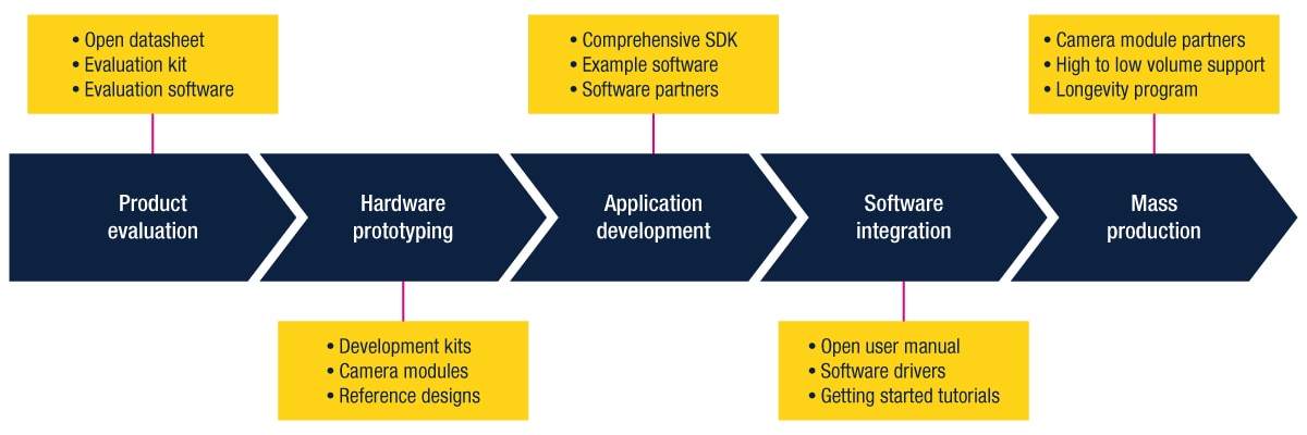 开发视觉系统的过程往往既复杂又耗时,需要开发人员具备深厚的专业底蕴、集成多个组件并需要多家供应商积极参与,方可确保实现最佳的摄像头性能。