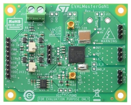 - 半桥演示板配备MASTERGAN1,并且能够承受600 V电压