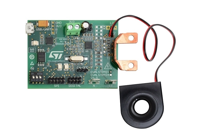 The EVALSTPM33 energy metering evaluation board is a class 0.2, single-phase meter which includes tamper monitoring, CT and shunt current sensors for power line systems with Vnom =140 to 300 V(RMS), Inom /Imax=5/100 A(RMS), flin =50/60 Hz± 10% and Tamb = -40 to +85 °C.