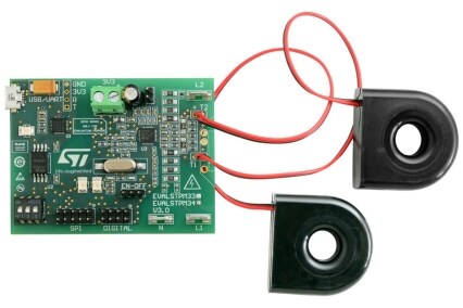 The EVALSTPM34 evaluation board is a class 0.2, dual-phase meter with 2 CTs for power line systems with Vnom = 140 to 300 V(RMS), Inom / Imax = 5/100 A(RMS), flin = 50/60 Hz ± 10% and Tamb = -40 to +85 °C.