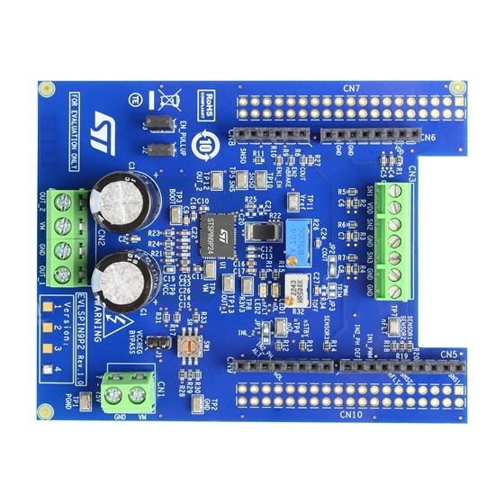 The EVLSPIN9P2 demonstration board is a full-bridge power board, which allows the evaluation of all the STSPIN9P2 features.