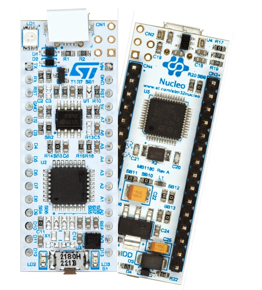 The STM32 Nucleo-32 board provides an affordable and flexible way for users to try out new concepts and build prototypes with any STM32 microcontroller line in 32-pin packages, choosing from the various combinations of performance, power consumption and features.The Arduino™nano connectivity makes it easy to expand the functionality of the STM32 Nucleo open development platform with a choice of specialized shields.The STM32 Nucleo-32 board does not require any separate probe as it integrates the ST-LINK/V2-1 debugger/programmer.The STM32 Nucleo-32 board comes with the STM32 comprehensive software HAL library together with various packaged software examples, as well as direct access to mbed online resources.