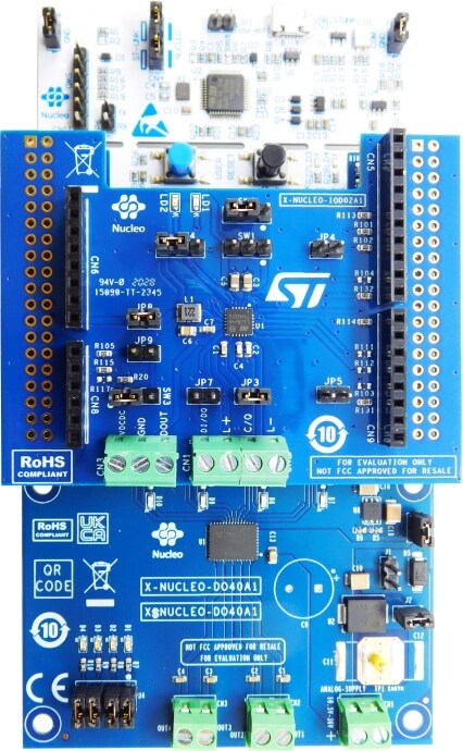 P-NUCLEO-IOD5A1是一款STM32 Nucleo组合套件,由堆叠在NUCLEO-G071RB开发板上的X-NUCLEO IOD02A1和X-NUCLEO-DO40A1扩展板组成。