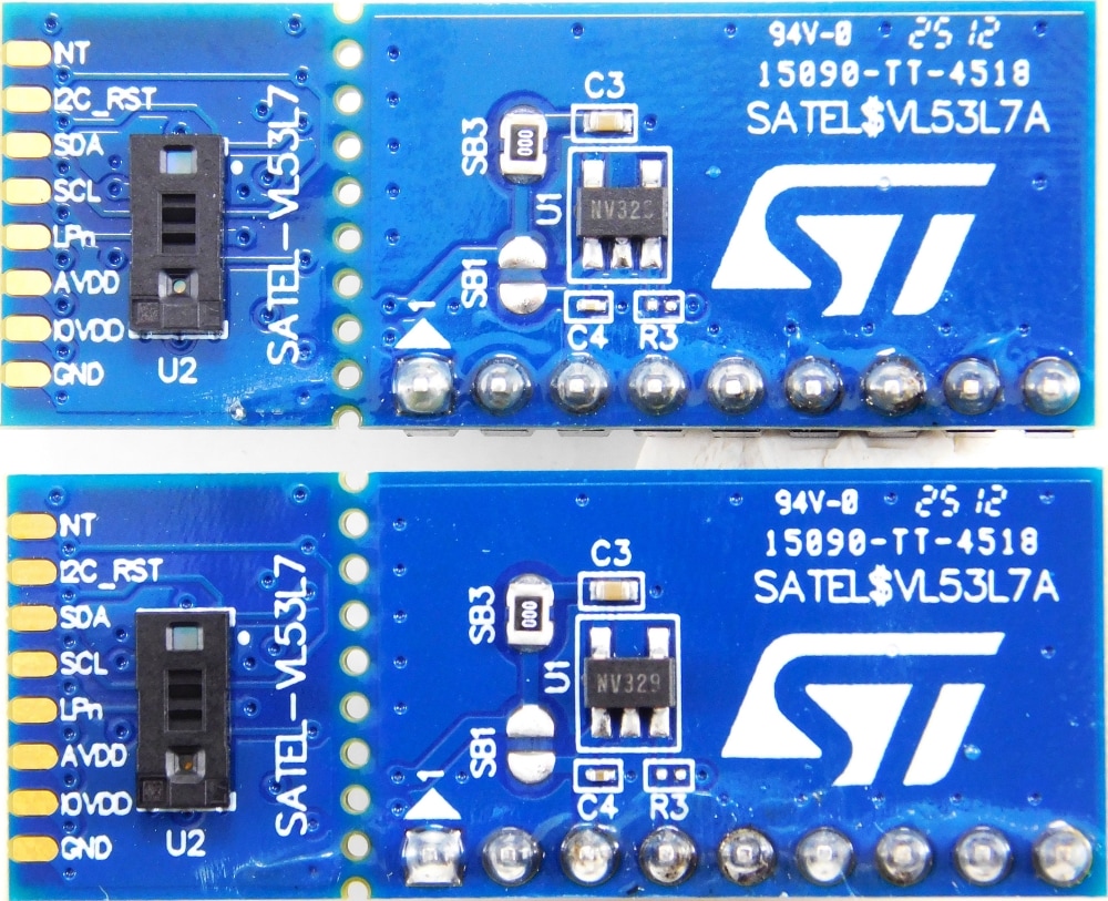 SATEL-VL53L7封装包含两块转接板,可轻松集成到客户的设备中。
