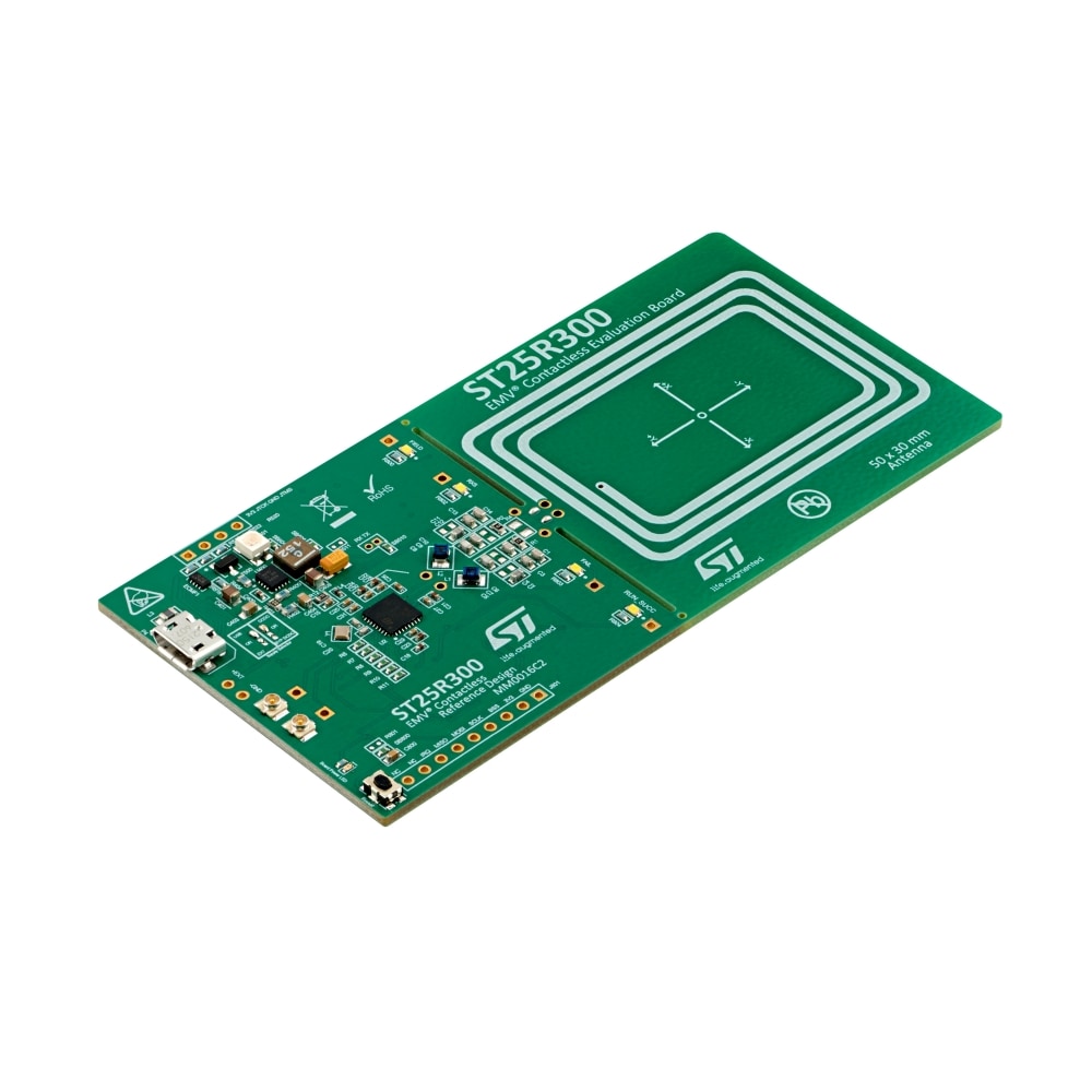 面向EMV® L1非接触式应用的ST25R300-EMVCo评估板包含了一个功能全面的开发包,可帮助用户立即开始执行EMVCo 3.1a和EMVCo 3.2a PCD L1模拟和数字测试。评估板上的ST25R300 NFC读卡器器件(采用32引脚UQFPN封装)与一个小型 (50 x 30 mm) 三圈射频天线相连接;该天线可沿撕拉边缘进行拆卸。