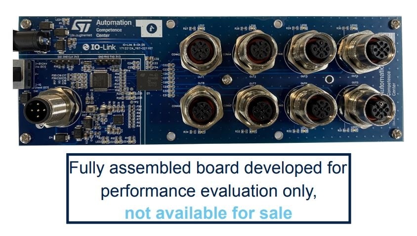 This STDES-8CHDINPUT reference design has to communicate with an IO-Link master board and a PC with an appropriated control GUI software. The IODD file for the STDES-8CHDINPUT is available.