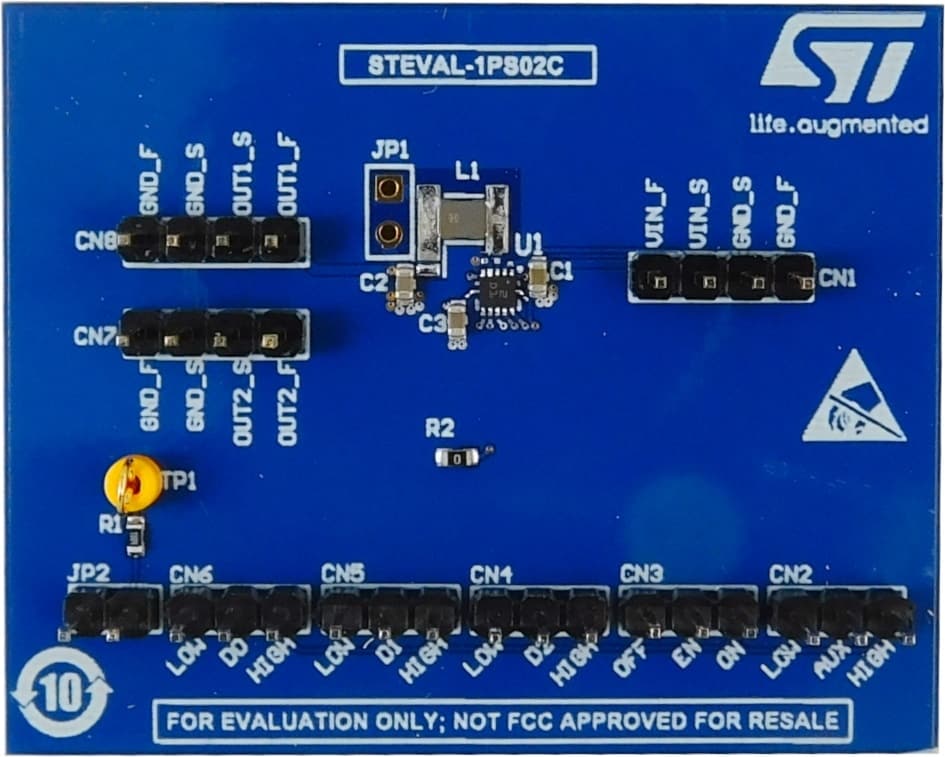 The board embeds the ST1PS02CQTR nano-quiescent miniaturized synchronous step-down converter which implements enhanced peak current control (PCC) and advanced design circuitry to minimize quiescent current. It features a controlled load switch to supply a subsystem with the same voltage rail. The device is supplied in TQFN12 (2.0x1.7 mm) thin package, but other packages are also available.