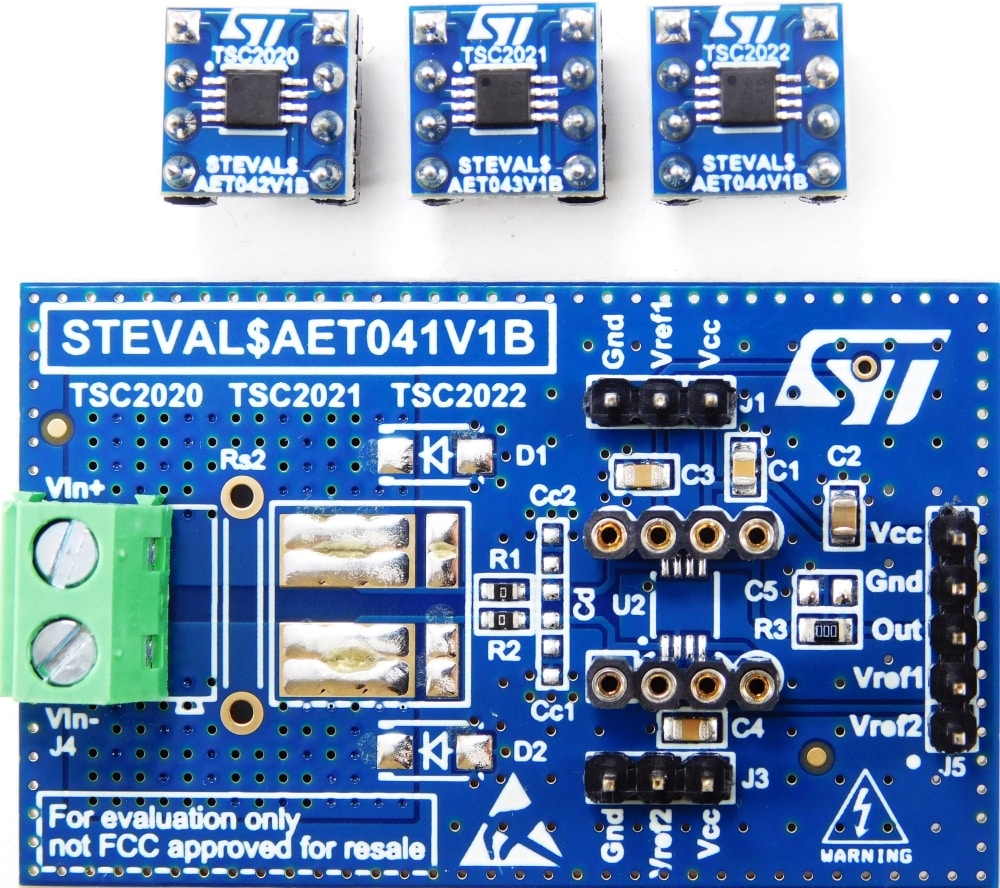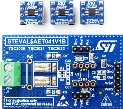 STEVAL-AET042V1B: daughter board with a TSC2020 mounted with a gain of 20.
