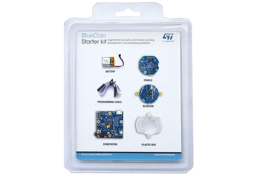 - BlueCoin模块(STEVAL-BCNCS01V1),内置STM32F446、LSM6DSM、LSM303AGR、LPS22HB、4x MP34DT06J、BlueNRG-MS、BALF-NRG-01D3、STBC03JR